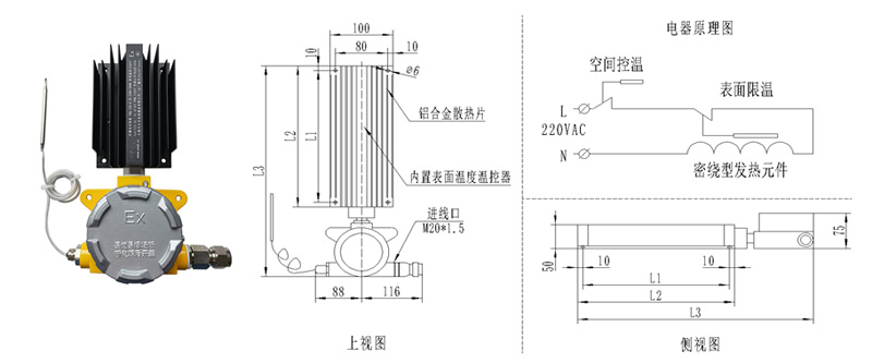 4)控制電路為環(huán)境溫控+表面溫控的雙溫控設計,符合中國國家防爆標準GB3836的要求。