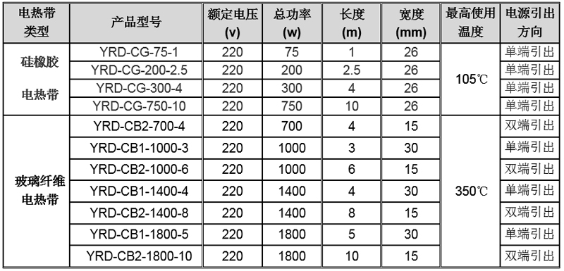 硅橡膠電熱帶可用于潮濕場(chǎng)合,玻璃纖維電熱帶不防水。