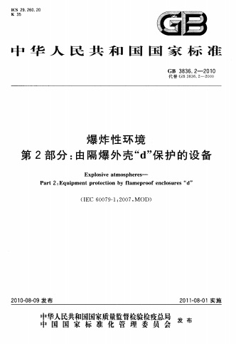 GB 3836.2-2010 爆炸性環(huán)境 第2部分:由隔爆外殼“d” 保護(hù)的設(shè)備